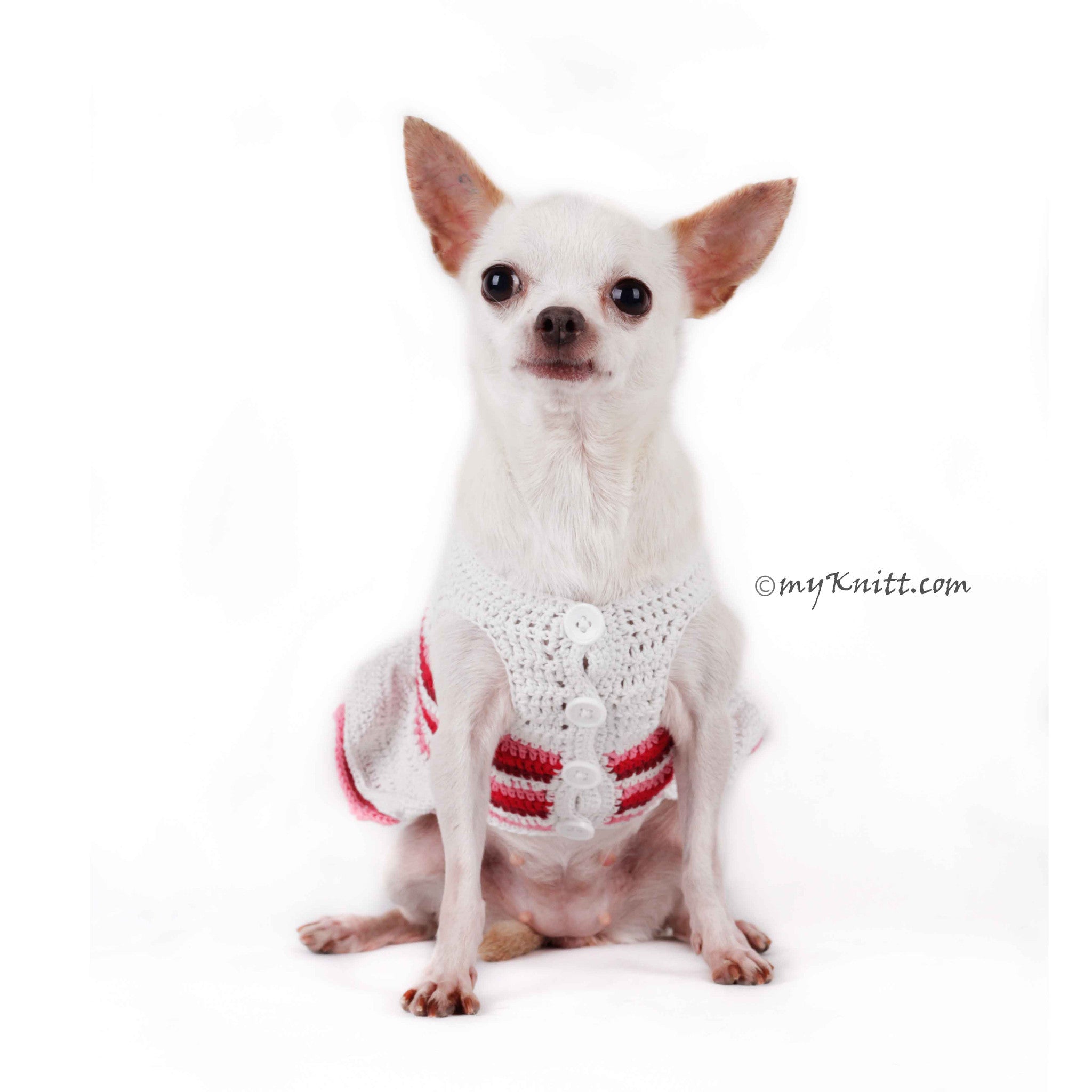 Bohemian Pink Peach Dog Dress in Wavy Ruffle Skirts. Perfects to wear at any season or for photo props, parties. Using buttons for easy to put on and off. Designed and handmade crocheted by Myknitt Designer Dog Clothes. Any custom made dog clothing are welcome.