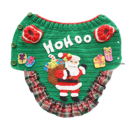 Cute Santa Hohoho Christmas Pet Dress Crochet from Myknitt Designer Dog Clothes. Handmade crochet dog dress using 100% cotton yarn material. Custom dog clothes are welcome.