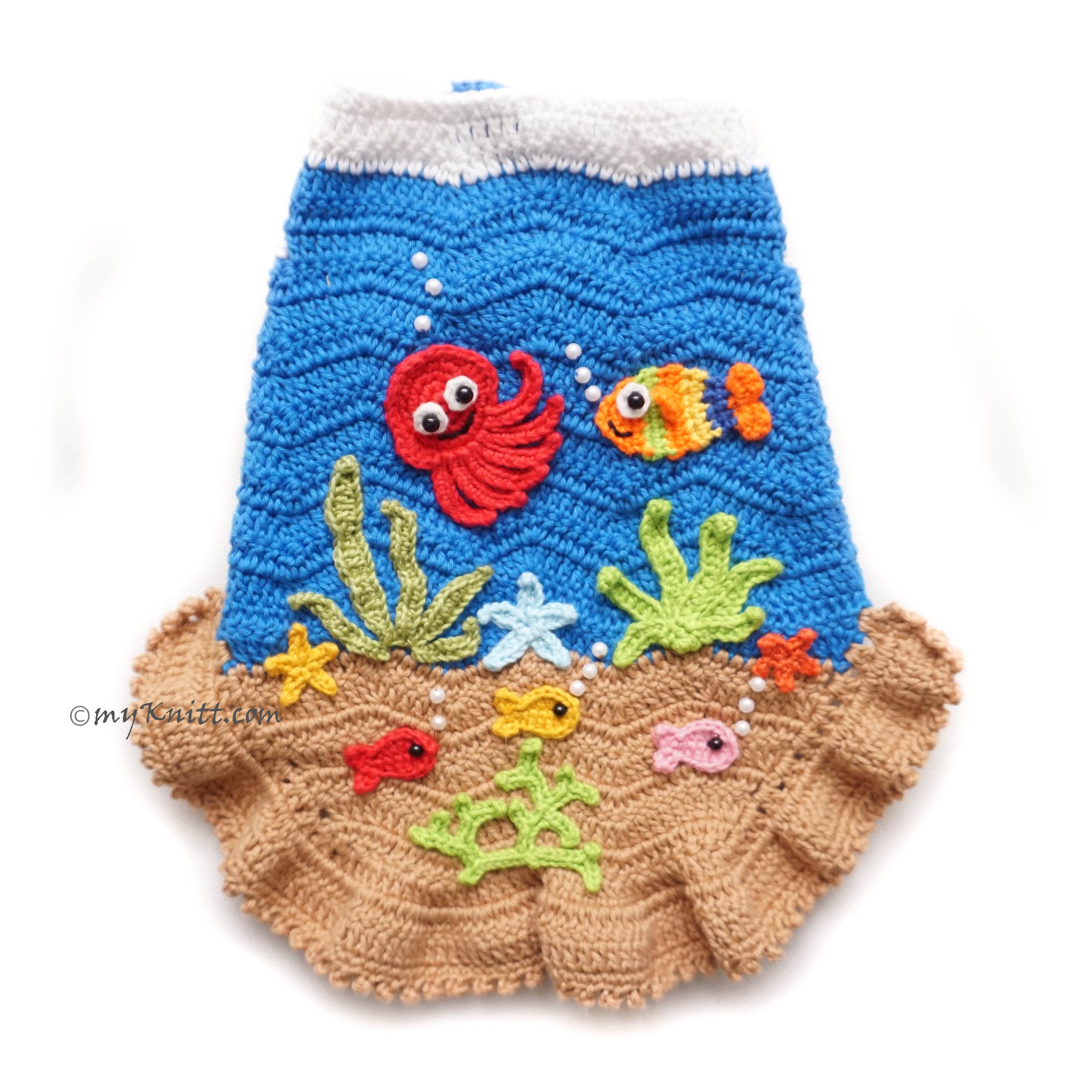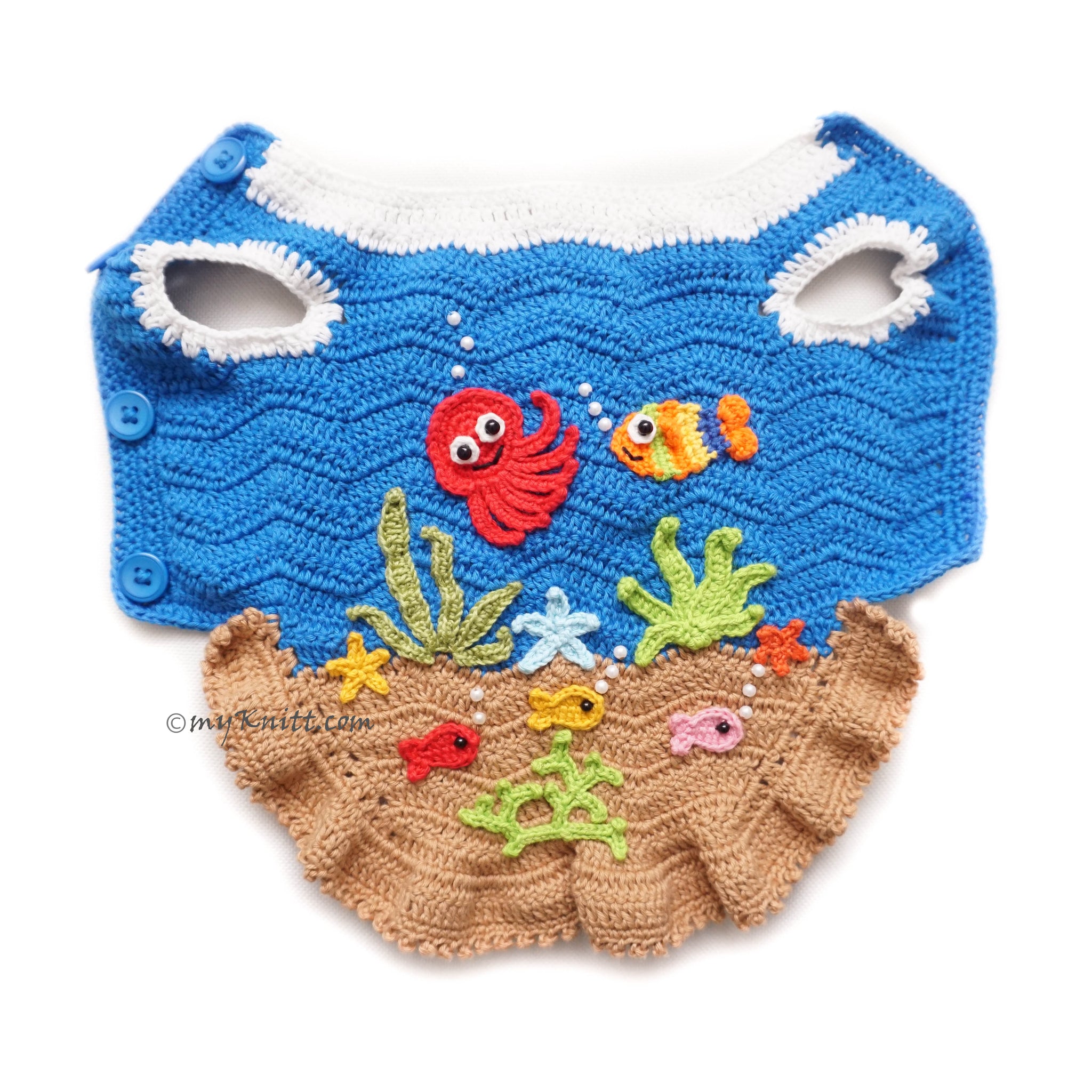 Crochet Sea Fish, Crochet Squid, Crochet coral reef. Custom pet dress, chihuahua dress, small dog dress custom, Large dog costume crochet.