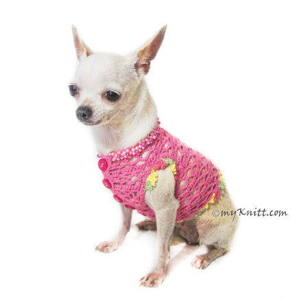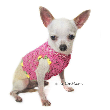 Lightweight Pink Net Dog Shirts Crochet with Pearls DF18 by Myknitt Designer Dog Clothes. Handmade crochet made of 100% cotton yarn materials. Made to fit your furbaby's body measurements