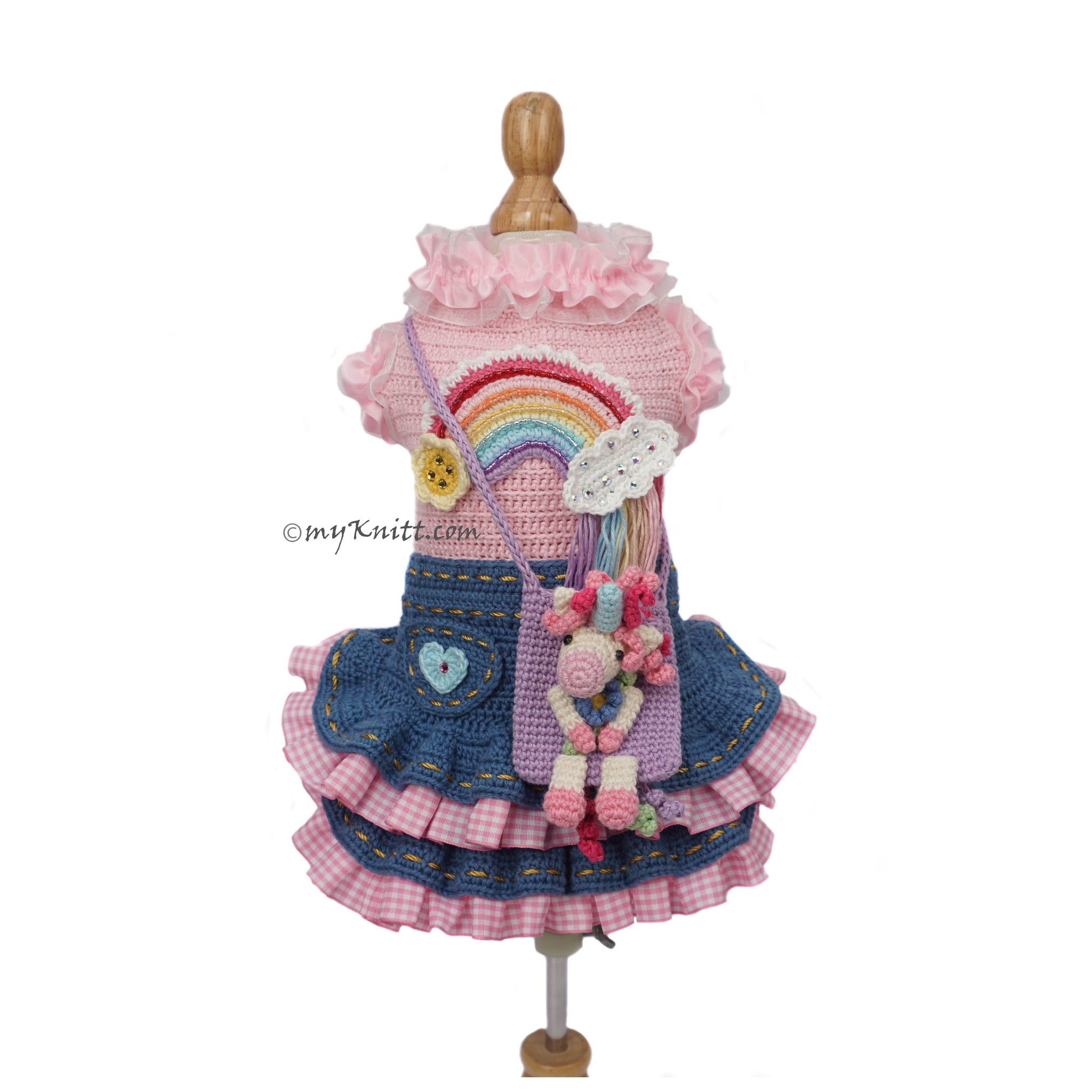 Cute Lala Unicorn Crochet Dog Dress by Myknitt. Made of cotton yarn material and 100% handmade crochet