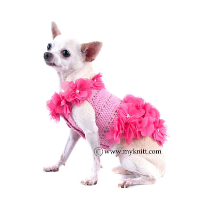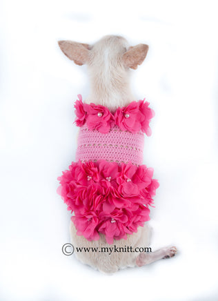 Cute looking pink dog clothes Hawaiian thematic from Myknitt Designer Dogs. This adorable chihuahua clothes are full with flower and pearls accessories. Buttons for easy to put on. Any custom pet clothing are welcome.