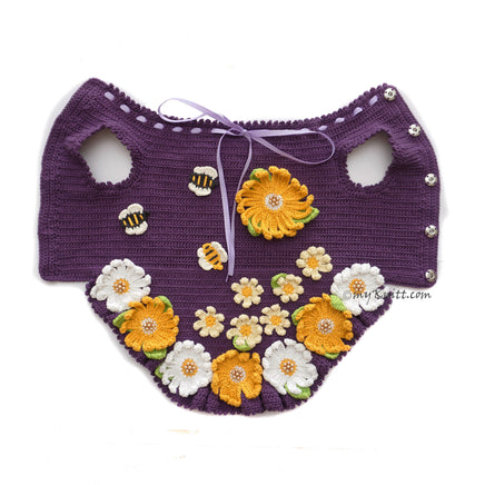 Purple Crochet Dog Dress Full Gerbera Flower with Crochet Bee by Myknitt Designer Dog Clothes.