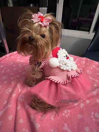Santa Pink Dog Tutu, Christmas Pink Dog Tutu Crochet DF246 by Myknitt Designer Dog Clothes. Handmade crochet dog clothes, custom size dog dress. Custom cat clothes. made of 100% cotton yarn material