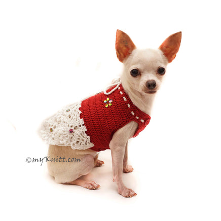 Burgundy Dog Dress Crochet Lace with Crystal Apparel. Beautiful Chihuahua Dog Dress Wedding. Any personalized dog clothes are welcome. Made of 100% cotton yarn material.