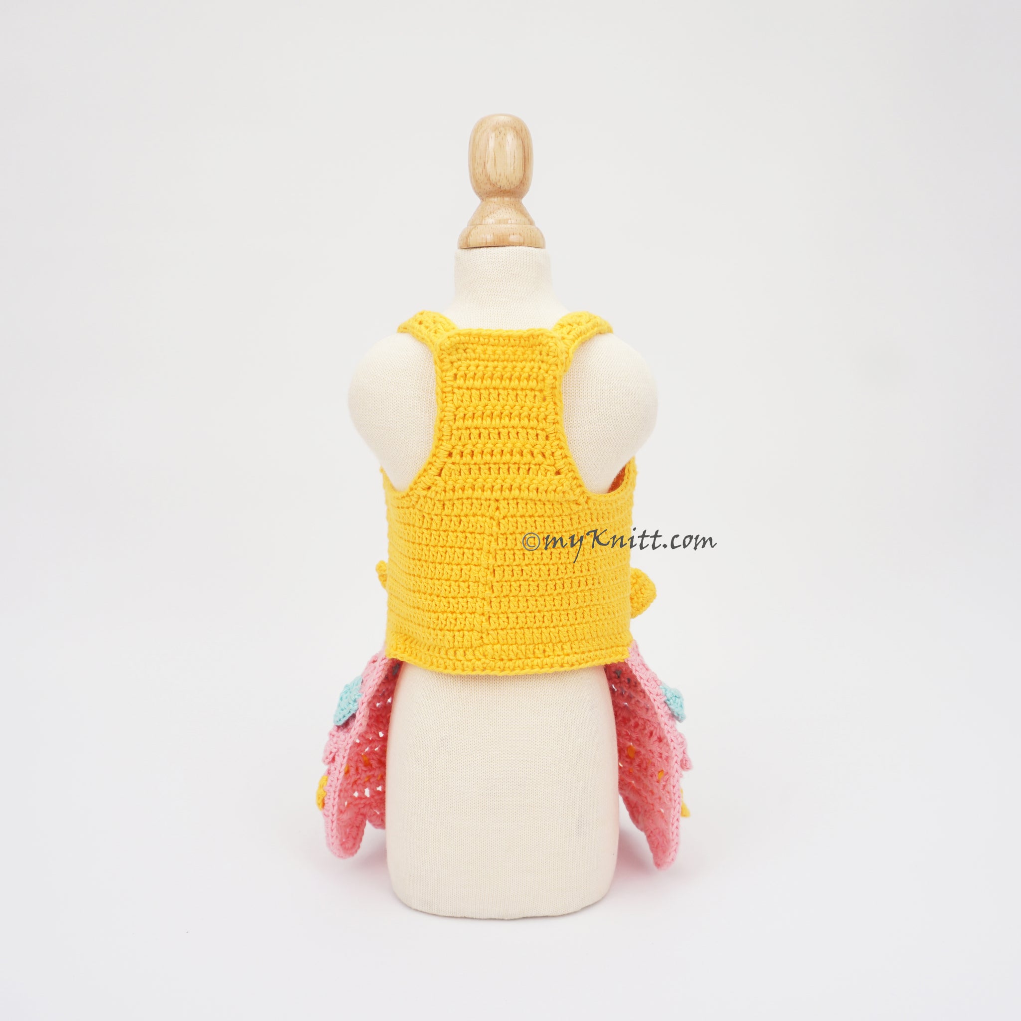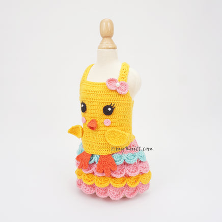 Funny Chick Costume Dog Dress by Myknitt. Made of cotton yarn material and 100% handmade crochet